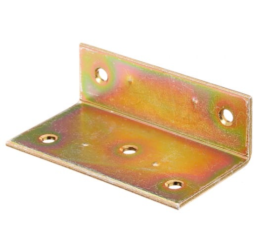 Уголок применяется для соединения под углом 90° мебельных щитов из дерева, фанеры, ДСП. Материал: оцинкованная сталь. Толщина: 2 мм. Благодаря гальванической оцинковке желтого цвета уголок выигрышно смотрится на дереве.